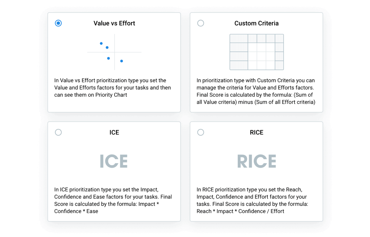 Оцените функции или задачи с помощью ICE, RICE или взвешенной оценки. Затем выберите наиболее важные из них из верхней части приоритетного бэклога.