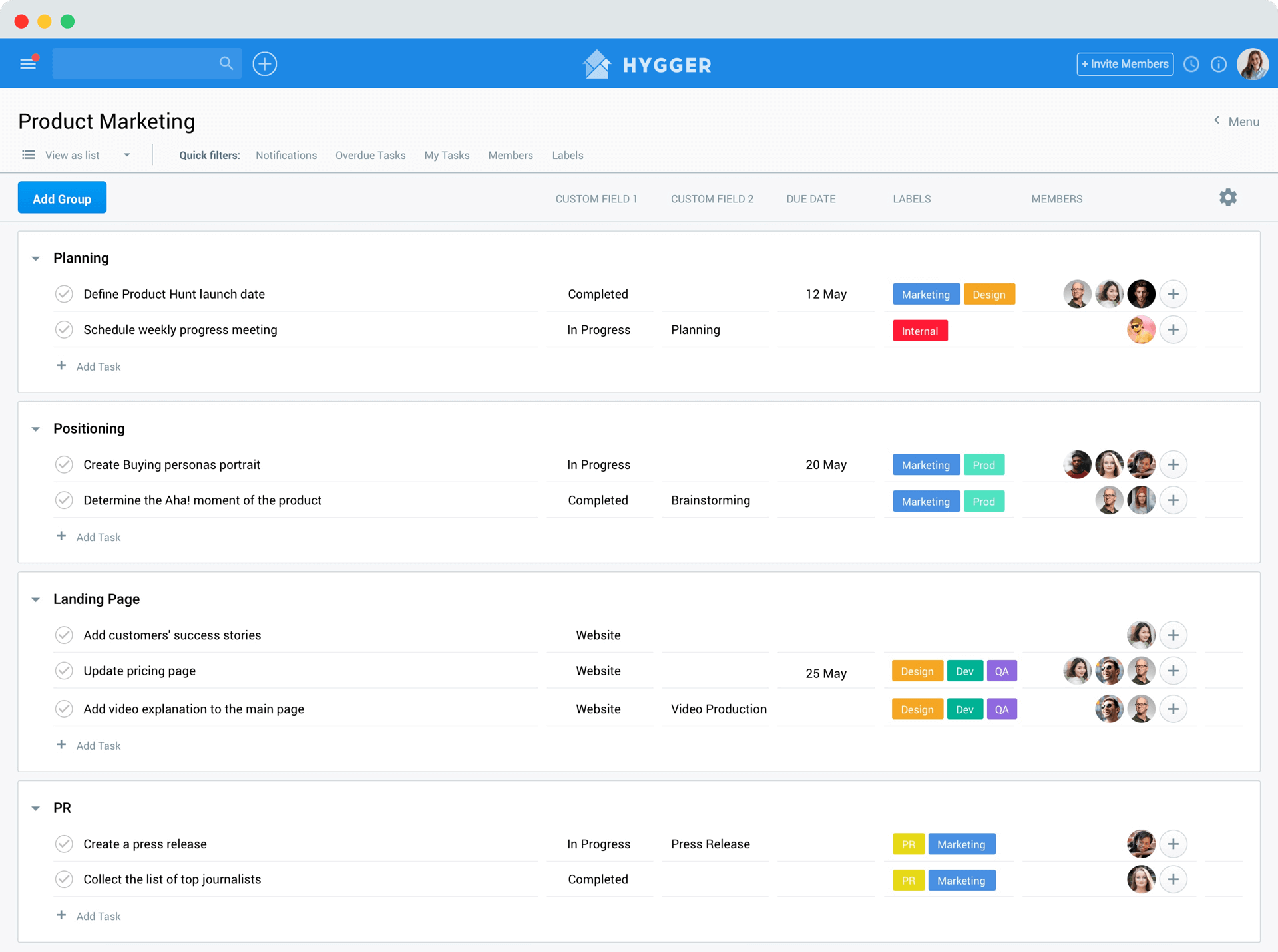 Используйте традиционные списки задач для организации своей работы. Создайте их вид в соответствии с вашими потребностями с помощью пользовательских полей.