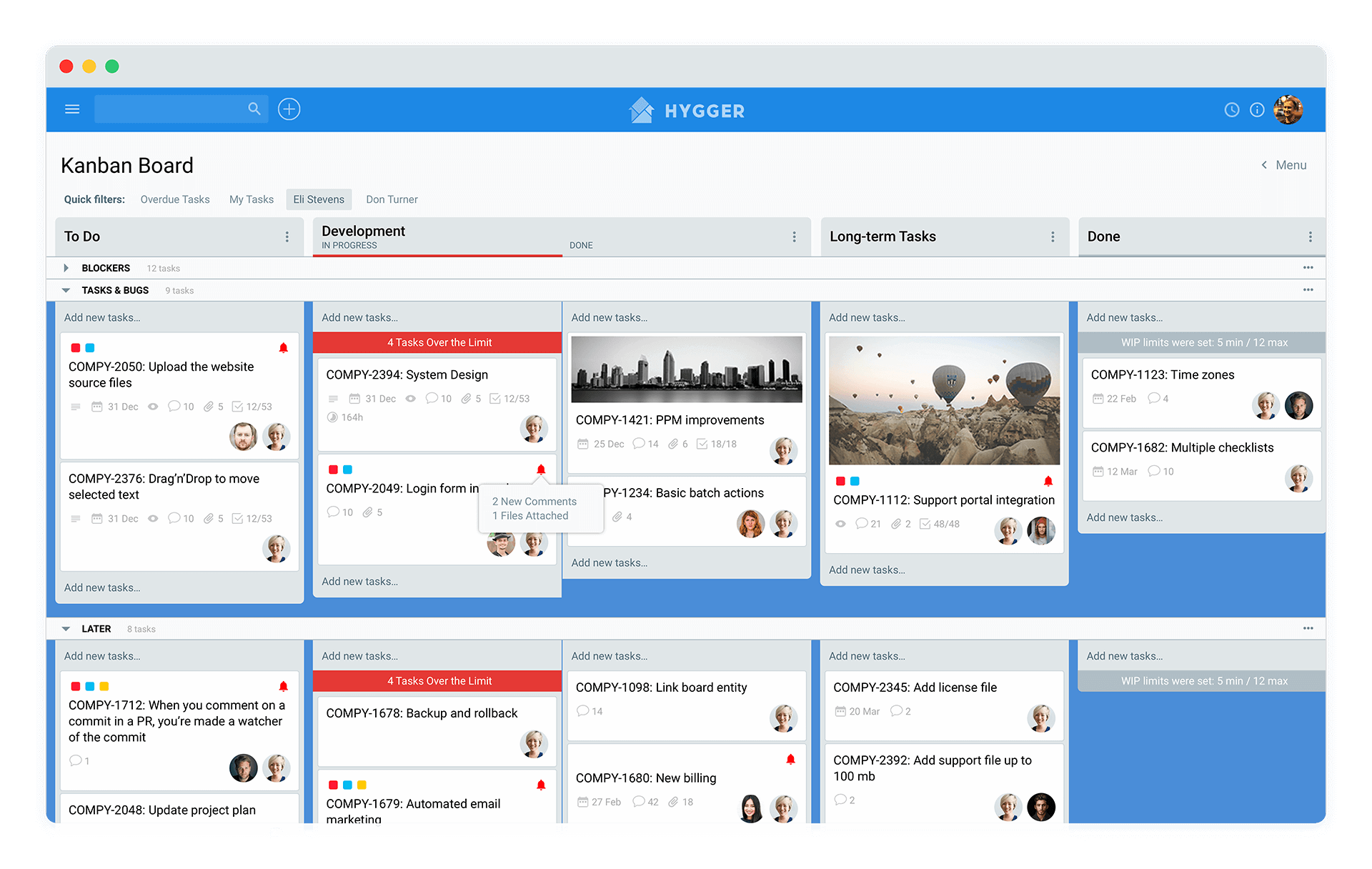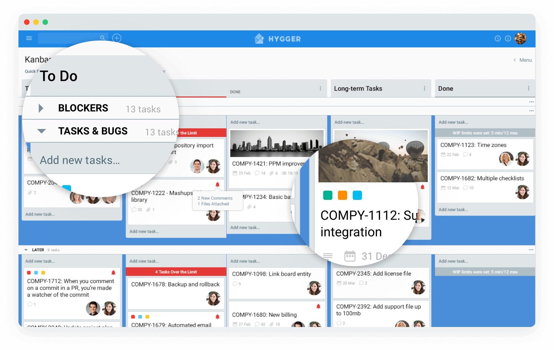 Благодаря этой функции ваша доска Hygger Kanban будет оставаться хорошо организованной, не загроможденной работой и внесет больше ясности в рабочий процесс. Организуйте задачи на своих досках с помощью Swimlanes или Labels и выявляйте блокирующие и узкие места.