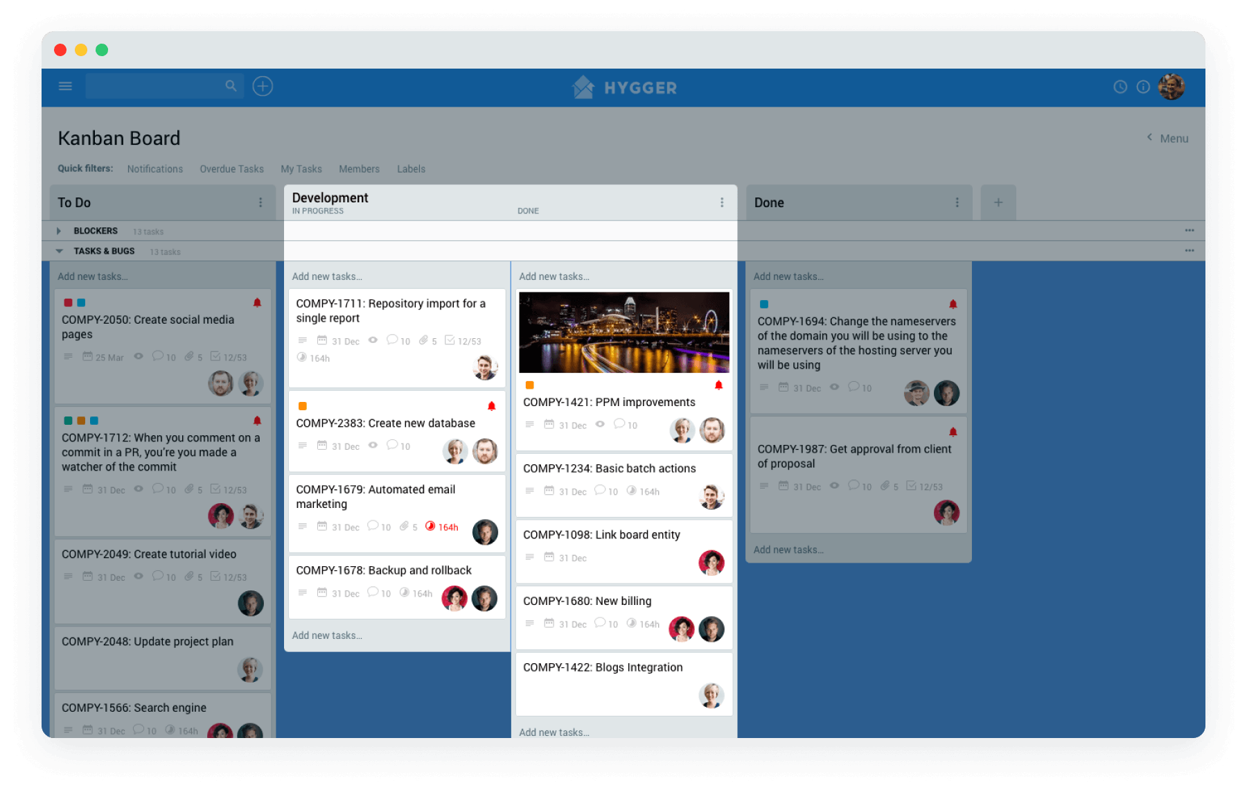 Hygger позволяет точно отслеживать время для быстрого выставления счетов и начисления заработной платы. Отслеживайте время выполнения задач и генерируйте сводные отчеты по всем членам команды, проектной деятельности и целям, чтобы увидеть эффективность и скорость работы команды.