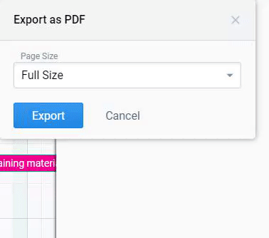 Если вы выберете «Экспортировать в PDF», вам будет предложено выбрать размер страницы. Документ в формате PDF будет создан автоматически через несколько минут.