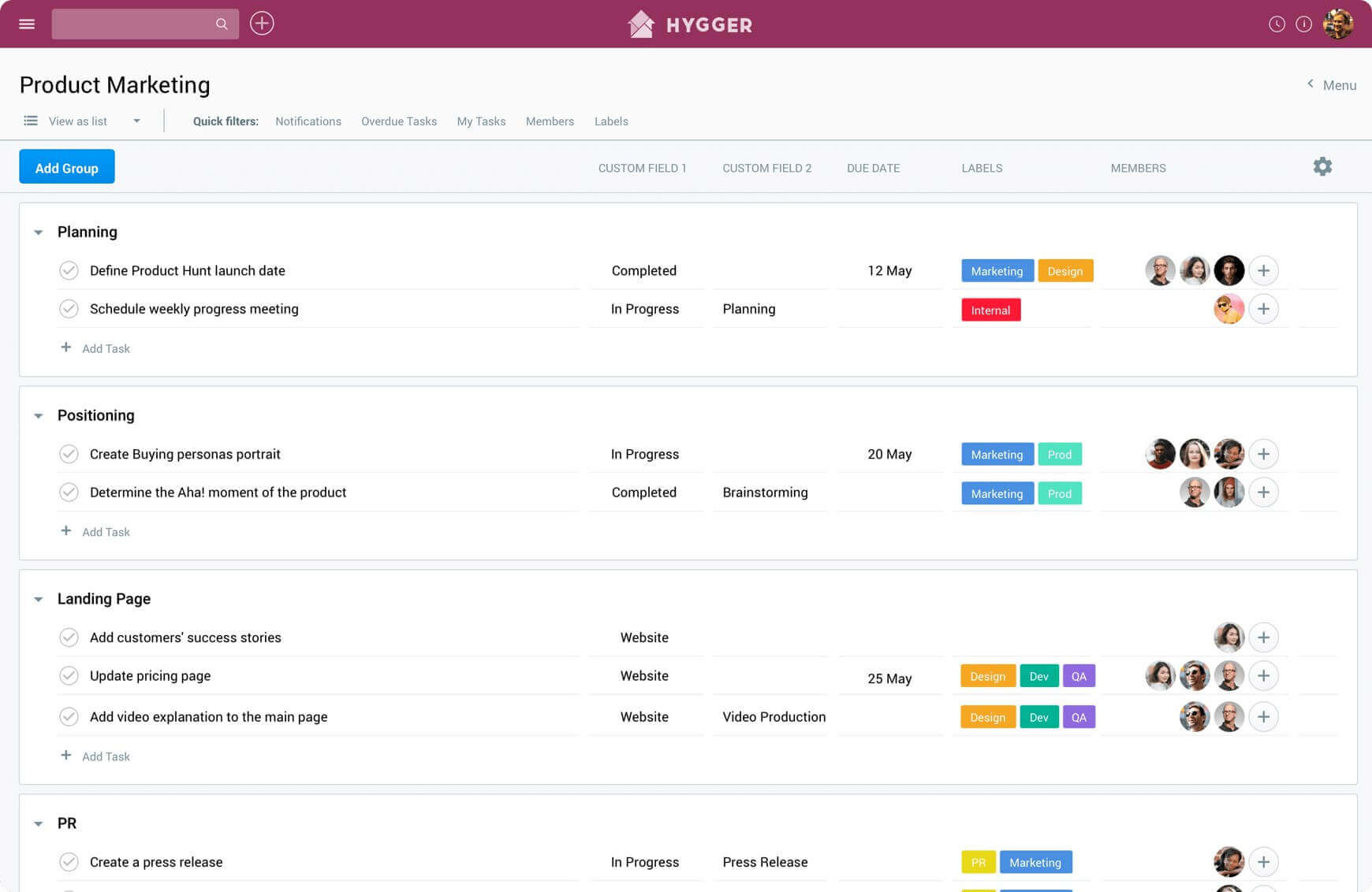 Собирайте свои задачи в традиционные списки задач. В Hygger вы можете сами выбрать тип доски, который соответствует вашим требованиям и привычкам.