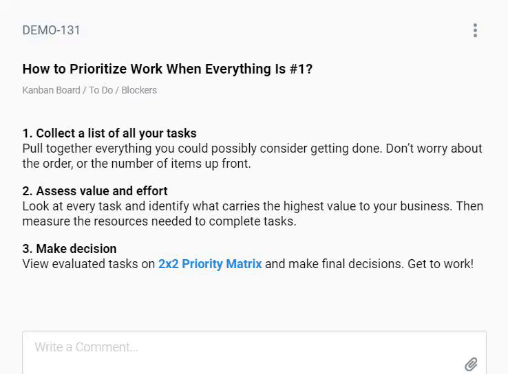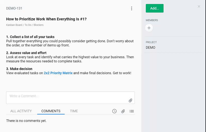 Создав задачу, вы можете добавить детали. Даже если название достаточно понятное (как «создать аккаунт»), лучше дать карточке больше информации. Давайте узнаем, как это сделать.