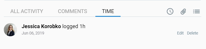 Чтобы увидеть только журнал работы, вы можете открыть раздел «Время». Здесь вы увидите время, которое ваши коллеги потратили на выполнение этой задачи.