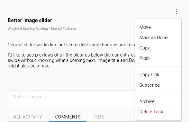 Помимо настроек приоритетов и матрицы приоритетов, еще одной специфической для бэклога функцией Hygger является опция Push. Опция Push означает, что вы связываете задачу из бэклога с другой доской.