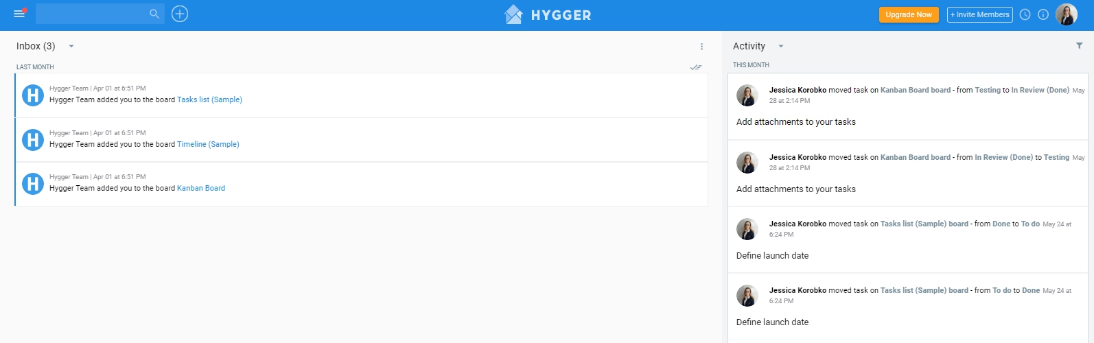 Место, где вы можете найти все уведомления, — это папка «Входящие». Если кто-то назначает вас на задание, упоминает вас в комментарии или происходит любое другое действие, вы получаете уведомления. Эти уведомления хранятся в папке «Входящие», пока вы не откроете ее или не заархивируете. Уведомления группируются по дате: «Сегодня», «Вчера», «В этом месяце».